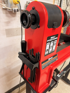 ⚠️ Never attempt to change tool heads while the lathe is running. Always unplug the lathe when installing or removing centers and faceplates.